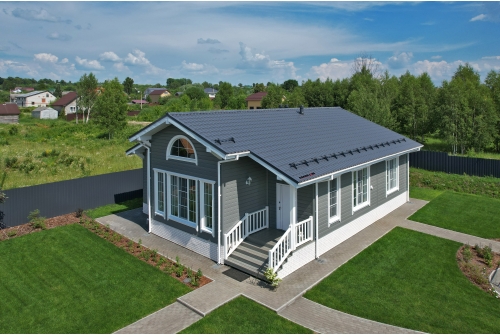 - В отличие от облицовки фасада деревом, металлический сайдинг «ЭкоБрус GL» прост в монтаже и не требует дополнительного послемонтажного ухода.